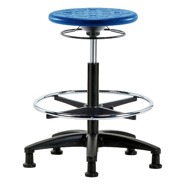 Stool, Weight Capacity 300 lb, Seat Height Range 22 in to 32 in, Seat Depth 13 in, Seat Width 13 in, Color Blue, Material Polyurethane, Base Nylon Reinforced Fiberglass, Features 360 Degrees Control, Soil and Puncture Resistant, Includes Not Applicable, Standards ANSI/BIFMA, CAL 117