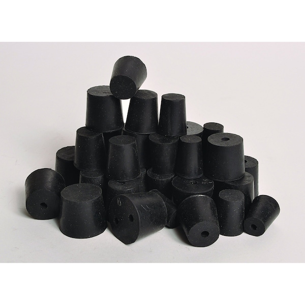 Stopper, Stopper Size 6, Neck Size 25 mm, Screw Closure Size 25mm, Bottom Diameter 26 mm, Top Diameter 32 mm, Overall Height 25 mm, Material Natural Rubber, Product Type Stopper, Color Black, Autoclavable Yes, Number of Holes 1, Standards Not Applicable, Special Features Low Sulfur Content, Withstand Temperatures From - 25 to 70 Degrees C (-13 to 158 Degrees F), Resists Abrasion and Water, For Labware Type Erlenmeyer Flasks, Test Tubes, Liner Material Natural Rubber, Hole Diameter 5 mm