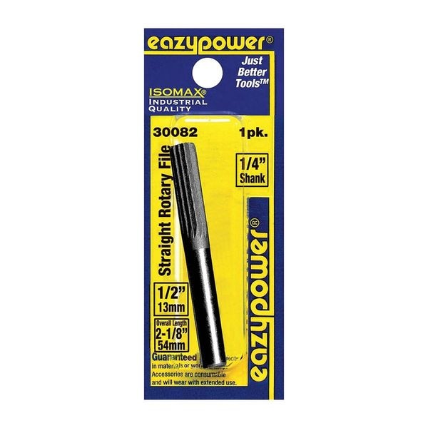 Rotary File, Rotary Tool Accessory Type Rotary File, Bit Material Alloy Steel, Shape Cylinder, Max. Speed 2,500 RPM, Shank Diameter 1/2 in, Mount Type Mounted, Overall Length 2 1/8 in, Burr Diameter 1/2 in, Head Length 1 in, Head Width 1/4 in, Material Application Bronze, Iron, Mild Steel, Plastic, Soft Metal, Wood