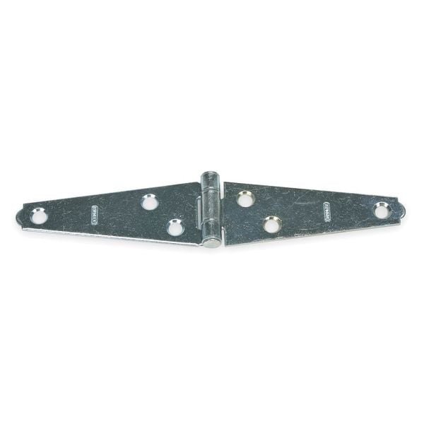Strap Hinge, Steel Material, Zinc Finish, Not Applicable Load Capacity, With Holes, 3 Holes per Leaf, No Ligature Resistant, 270 Degrees Range of Motion, Orientation Non Handed, 1 1/8 in Door Leaf Height, 1 3/16 in Frame Leaf Height, 3 in Door Leaf Width, 3 in Frame Leaf Width, 0.056 in Door Leaf Thickness, 0.056 in Frame Leaf Thickness, Plain Bearing Type, Rounded Corners, Included Hardware, Full Surface Mounting, Not Applicable Overall Knuckle Height, Steel Pin Material, Nonremovable Pin Type