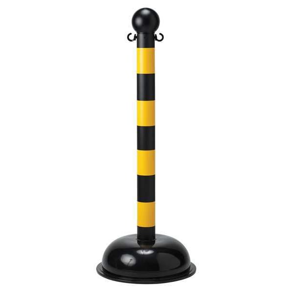 Striped Barrier Post, For Use With Chain, Compatible Line Chain, Overall Height 41 in, Post Diameter 3 in, Base Diameter 16 in, Fillable Yes, Post Material Polyethylene, Base Type Fillable, Includes Base, C-Hook, Product Type Post, Post Finish Non-Reflective, Base Material Plastic, Color Black/Yellow