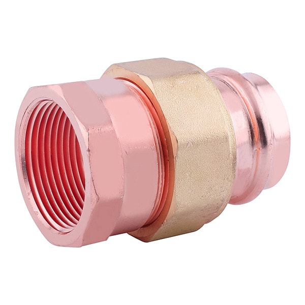 Crimp Union Fitting, Application Potable Water, Fitting Side A Connection Type Press-Fit, Fitting Side B Connection Type FNPT, Fitting Side A Copper Tube Size 2 in, Fitting Side B Copper Tube Size Not Applicable, Fitting Material Brass, Copper, Fitting Side A Pipe Size Not Applicable, Fitting Side B Pipe Size 2 in, Material Grade C12200, C46500, O-Ring Material EPDM, Specific Fitting Shape Straight Union, Finish/Coating Polished, Fitting Side A Tube Outer Diameter 2 1/8 in