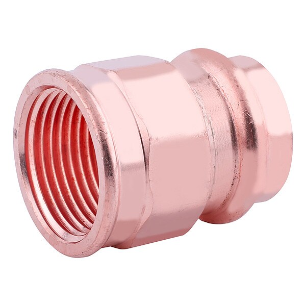 Crimp Adapter Fitting, Application Potable Water, Fitting Side A Connection Type Press-Fit, Fitting Side B Connection Type FNPT, Fitting Side A Copper Tube Size 1 1/2 in, Fitting Side B Copper Tube Size Not Applicable, Fitting Material Copper, Fitting Side A Pipe Size Not Applicable, Fitting Side B Pipe Size 1 1/2 in, Material Grade C12200, O-Ring Material EPDM, Specific Fitting Shape Straight Adapter, Finish/Coating Polished, Fitting Side A Tube Outer Diameter 1 5/8 in