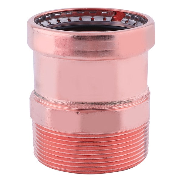 Crimp Adapter Fitting, Application Potable Water, Fitting Side A Connection Type Press-Fit, Fitting Side B Connection Type MNPT, Fitting Side A Copper Tube Size 2 1/2 in, Fitting Side B Copper Tube Size Not Applicable, Fitting Material Copper, Fitting Side A Pipe Size Not Applicable, Fitting Side B Pipe Size 2 1/2 in, Material Grade C12200, O-Ring Material EPDM, Specific Fitting Shape Straight Adapter, Finish/Coating Polished, Fitting Side A Tube Outer Diameter 2 5/8 in