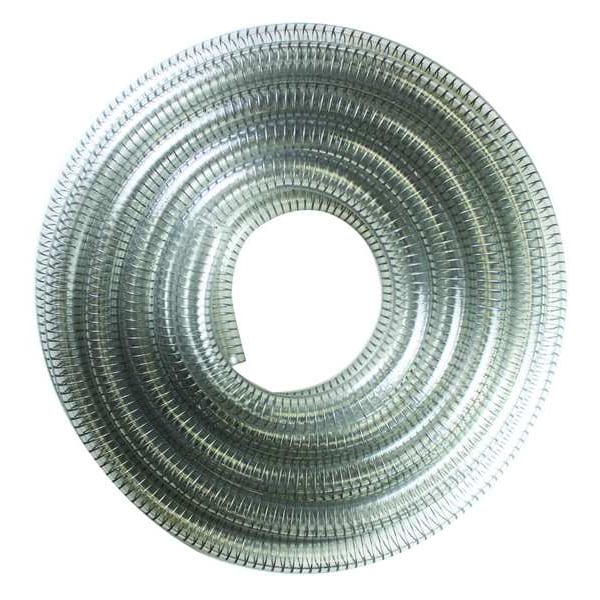 Suction and Transfer Hose, Application Coolant Lines, For Food and Water Dispensing, Pneumatic Systems, Pure Water Systems, Vacuum Lines and Auto Wash Equipment, Color Clear, Hardness Shore A: 73, Material PVC with Wire, Standards FDA, Wall Thickness 1/4 in, Bend Radius 5 In.