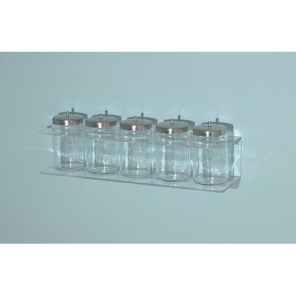 Sundry Jar Rack, Mountable, Material Acrylic, Color Clear, Glass and Acrylic Sundry Jars, Provides Holds Clear Plastic and Glass Sundry Jars, Includes Mounting Hardware