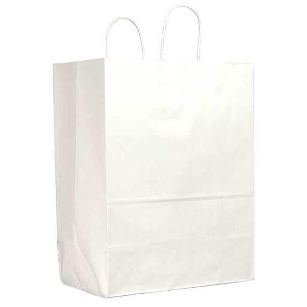 Bag Type Standard Merchandise Bag, Paper, Thickness Not Applicable, White, Handle Type Paper Twist, Message Not Applicable, Bag Bottom Type Flat, Shopping Bag, Package Configuration Bundle, Recycled Content Not Made From Recycled Content, FDA Compliant FDA Compliant, Width 13 in, Depth 7 in, Height 17 in, Package Quantity 250