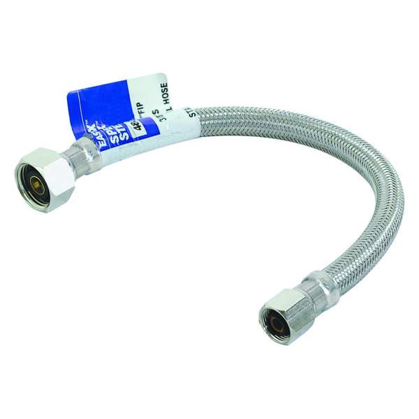 Supply Line, Hose Inside Dia. 1/4 in, Hose Length 16 in, Hose Tube Material PVC, Hose Cover Material 304 Stainless Steel, Max. Working Pressure @ 70 F 125 psi, Temp. Range 40 Degrees to 150 Degrees F, Standards AB1953, CSA, NSF, UPC, Hose Fitting A Material Brass, Hose Fitting B Material Brass, Hose Fitting A Type F Compression, Hose Fitting B Type FIP, Hose Fitting A Size 3/8 in, Hose Fitting B Size 1/2 in, Hose Configuration Coupled Assembly, For Use With Kitchen/Lavatory, Application Faucet