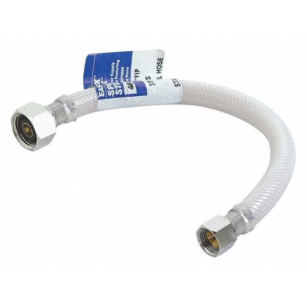Supply Line, Hose Inside Dia. 1/4 in, Hose Length 20 in, Hose Tube Material PVC, Hose Cover Material Nylon, Max. Working Pressure @ 70 F 200 psi, Temp. Range 40 Degrees to 150 Degrees F, Standards AB1953, CSA, cUPC, NSF, Hose Fitting A Material Brass, Hose Fitting B Material Brass, Hose Fitting A Type FRH, Hose Fitting B Type FIP, Hose Fitting A Size 3/8 in, Hose Fitting B Size 1/2 in, Hose Configuration Coupled Assembly, For Use With Kitchen/Lavatory, Application Faucet