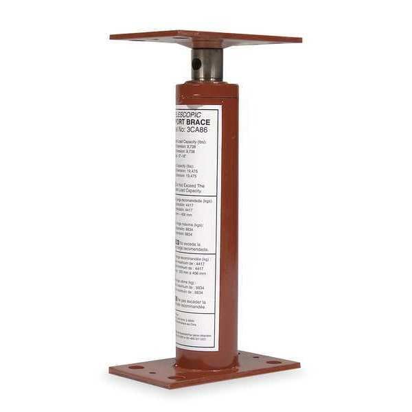 Telescopic Support Brace, Style -, Max. Service Height (In.) 16 in, Min. Service Height (In.) 12 in, Number of Sections 1, Capacity @ Max. Height (Lb.) 9,738, Capacity @ Min. Height (Lb.) 9,738, Rugged All Welded Steel Construction, Red Oxide Finish, Provide Extra Support for Leveling and Stabilizing Floor Beams and Joist during Construction and Repair Clevis Pin, Provides Easy Installation or Removal from Chain, Includes Screw and Turning Bar for Easy Height Adjustment