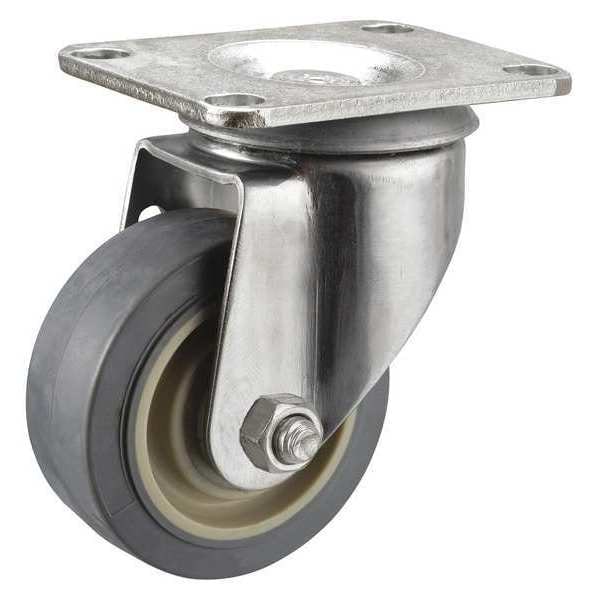 Swivel, Plate Caster, Load Rating 325 lb, Swivel Lock Type No Lock Included, Wheel Dia. 5 in, Wheel Width 1 1/4 in, Wheel/Tread Material Rubber, Wheel Core Material Polyolefin, Non-Marking Yes, Number of Wheels 1, Caster Brake Type No Brake, Tread Shape Standard