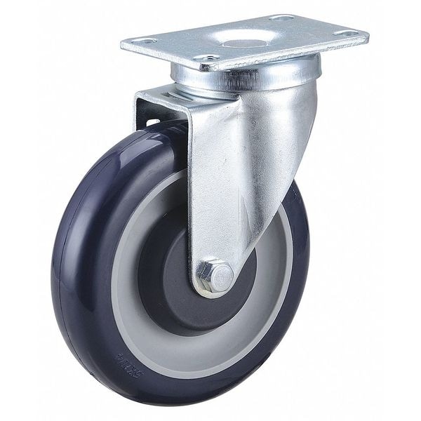 Swivel, Plate Caster, Load Rating 315 lb, Swivel Lock Type No Lock Included, Wheel Dia. 5 in, Wheel Width 1 1/4 in, Wheel/Tread Material Polyurethane, Wheel Core Material Polyolefin, Non-Marking Yes, Number of Wheels 1, Caster Brake Type No Brake, Tread Shape Standard