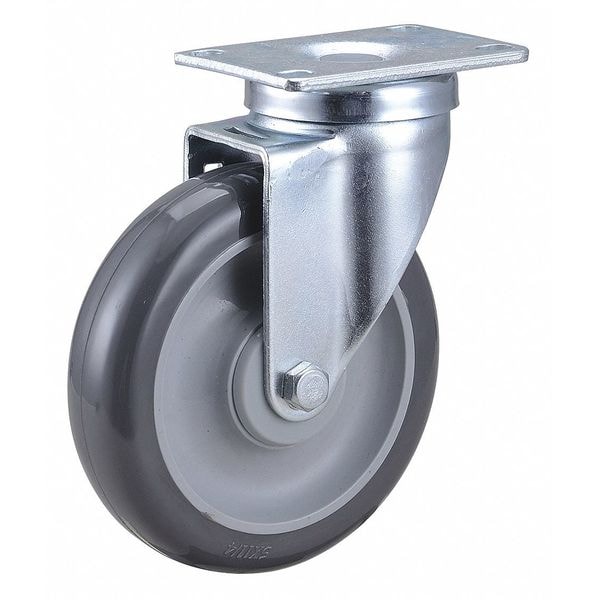 Swivel Plate Caster, 5 in Dia, 315 lb, Gray