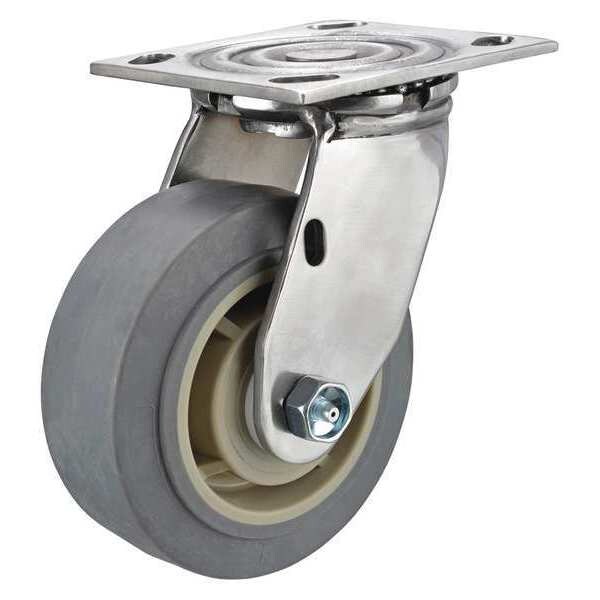 Swivel, Plate Caster, Load Rating 500 lb, Swivel Lock Type No Lock Included, Wheel Dia. 6 in, Wheel Width 2 in, Wheel/Tread Material Rubber, Wheel Core Material Polyolefin, Non-Marking Yes, Number of Wheels 1, Caster Brake Type No Brake, Tread Shape Standard
