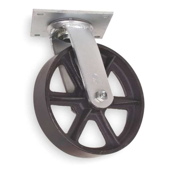 Swivel Plate Caster, Cast Iron, 8 in., 1200 lb.