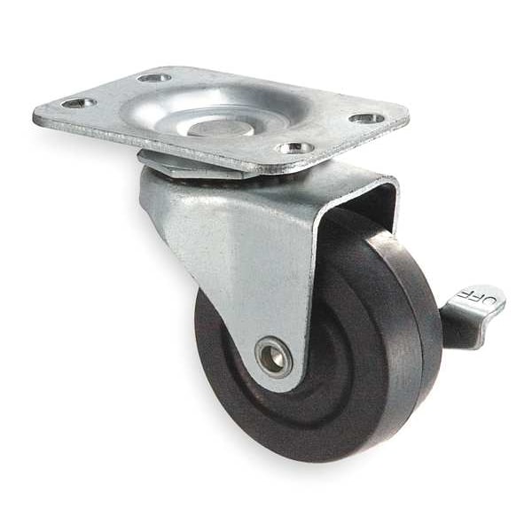 Swivel, Plate Caster, Load Rating 75 lb, Swivel Lock Type No Lock Included, Wheel Dia. 2 in, Wheel Width 7/8 in, Wheel/Tread Material Rubber, Wheel Core Material Rubber, Non-Marking No, Number of Wheels 1, Caster Brake Type Side Brake, Tread Shape Standard