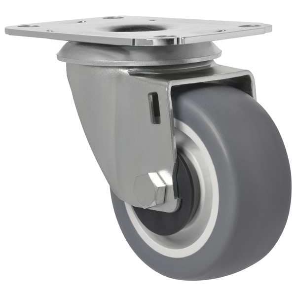 Swivel, Plate Caster, Load Rating 150 lb, Swivel Lock Type No Lock Included, Wheel Dia. 3 in, Wheel Width 1 1/4 in, Wheel/Tread Material Rubber, Wheel Core Material Polyolefin, Non-Marking Yes, Number of Wheels 1, Caster Brake Type No Brake, Tread Shape Standard
