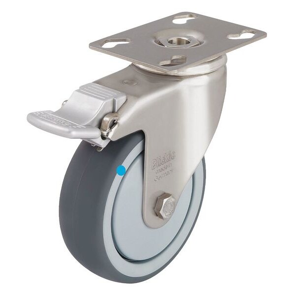 Swivel, Plate Caster, Load Rating 240 lb, Swivel Lock Type Total Lock, Wheel Dia. 4 in, Wheel Width 1 1/4 in, Wheel/Tread Material Rubber, Wheel Core Material Nylon, Non-Marking Yes, Number of Wheels 1, Caster Brake Type Total Lock, Tread Shape Standard