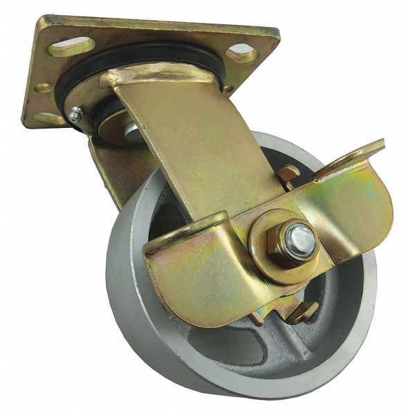 Swivel, Plate Caster, Load Rating 1000 lb, Swivel Lock Type No Lock Included, Wheel Dia. 5 in, Wheel Width 2 in, Wheel/Tread Material Iron, Wheel Core Material Iron, Non-Marking Yes, Number of Wheels 1, Caster Brake Type Side Brake, Tread Shape Standard