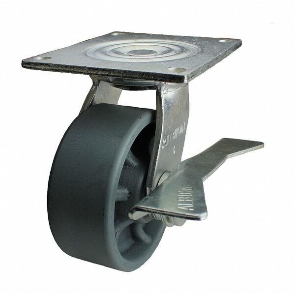 Swivel, Plate Caster, Load Rating 1200 lb, Swivel Lock Type No Lock Included, Wheel Dia. 6 in, Wheel Width 2 in, Wheel/Tread Material Cast Iron, Wheel Core Material Cast Iron, Non-Marking No, Number of Wheels 1, Caster Brake Type Side Cam, Tread Shape Standard