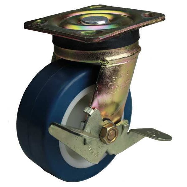 Swivel, Plate Caster, Load Rating 600 lb, Swivel Lock Type No Lock Included, Wheel Dia. 4 in, Wheel Width 2 in, Wheel/Tread Material Polyurethane, Wheel Core Material Polyolefin, Non-Marking Yes, Number of Wheels 1, Caster Brake Type Side Cam, Tread Shape Standard
