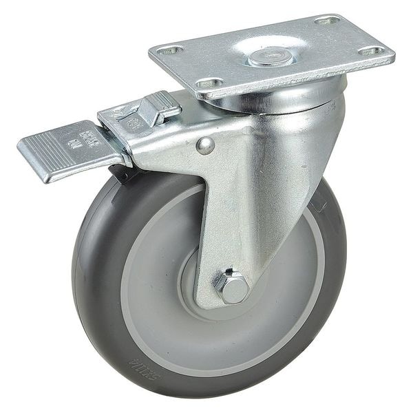 Swivel, Plate Caster, Load Rating 315 lb, Swivel Lock Type Total Lock, Wheel Dia. 5 in, Wheel Width 1 1/4 in, Wheel/Tread Material Polyurethane, Wheel Core Material Polyolefin, Non-Marking Yes, Number of Wheels 1, Caster Brake Type Total Lock, Tread Shape Standard