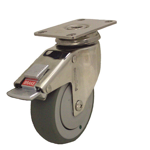 Swivel, Plate Caster, Load Rating 165 lb, Swivel Lock Type Total Lock, Wheel Dia. 3 in, Wheel Width 1 1/4 in, Wheel/Tread Material Rubber, Wheel Core Material Polyolefin, Non-Marking Yes, Number of Wheels 1, Caster Brake Type Total Lock, Tread Shape Standard