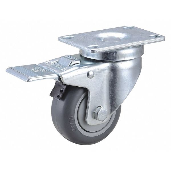 Swivel, Plate Caster, Load Rating 210 lb, Swivel Lock Type Total Lock, Wheel Dia. 3 in, Wheel Width 1 1/4 in, Wheel/Tread Material Rubber, Wheel Core Material Polyolefin, Non-Marking Yes, Number of Wheels 1, Caster Brake Type Total Lock, Tread Shape Standard