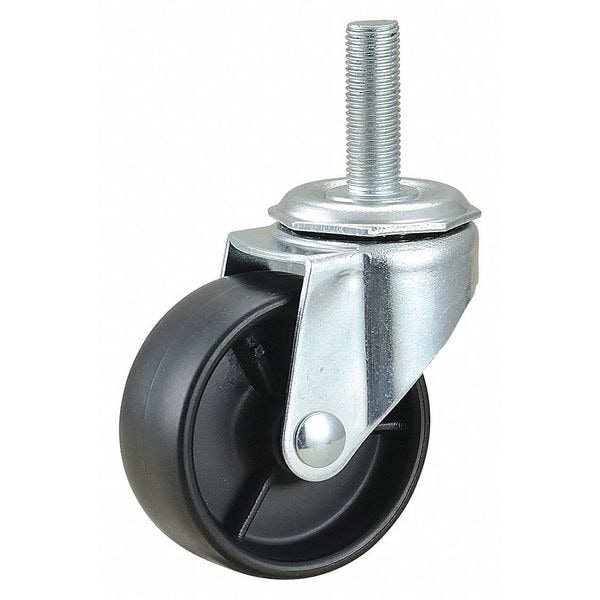 Stem Caster, Swivel Caster, 100 lb Load Rating, 0 to 299 lb, 2 in Wheel Dia., 7/8 in Wheel Width, Polyolefin Wheel/Tread Material, 2 1/2 in Mounting Height, Plain, 3/8 In.-16 x 1-1/8 in Caster Stem Size, Threaded, Steel Caster Frame Material, Zinc Plated Frame Finish, Yes Non-Marking, 1 Number of Wheels