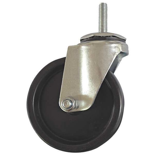Stem Caster, Swivel Caster, 150 lb Load Rating, 0 to 299 lb, 4 in Wheel Dia., 1 in Wheel Width, Polyolefin Wheel/Tread Material, 4 13/16 in Mounting Height, Plain, 3/8 In.-16 x 1-1/2 in Caster Stem Size, Threaded, Steel Caster Frame Material, Zinc Plated Frame Finish, Yes Non-Marking, 1 Number of Wheels