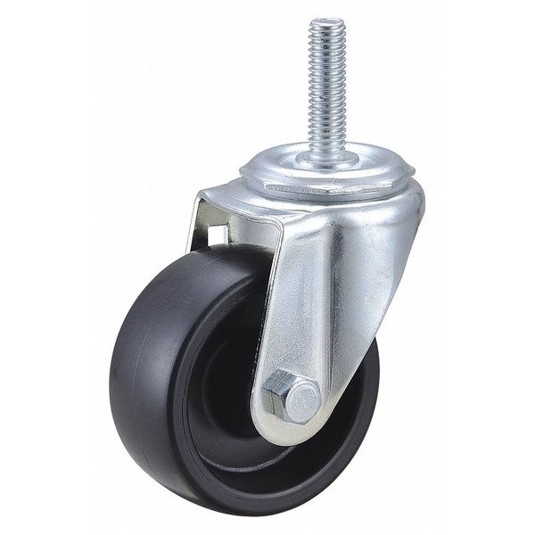 Stem Caster, Swivel Caster, 210 lb Load Rating, 0 to 299 lb, 3 in Wheel Dia., 1 1/4 in Wheel Width, Polyolefin Wheel/Tread Material, 3 13/16 in Mounting Height, Delrin, 7/16 In.-14 x 1-1/2 in Caster Stem Size, Threaded, Steel Caster Frame Material, Zinc Plated Frame Finish, Yes Non-Marking, 1 Number of Wheels