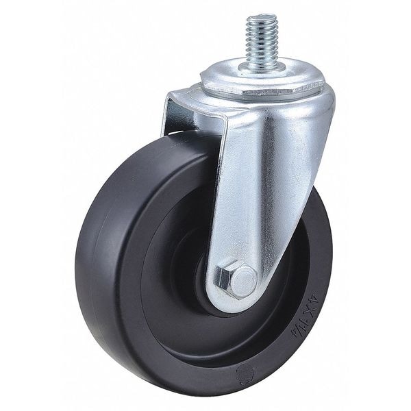 Stem Caster, Swivel Caster, 275 lb Load Rating, 0 to 299 lb, 4 in Wheel Dia., 1 1/4 in Wheel Width, Polyolefin Wheel/Tread Material, 4 13/16 in Mounting Height, Delrin, 1/2 In.-13 x 3/4 in Caster Stem Size, Threaded, Steel Caster Frame Material, Zinc Plated Frame Finish, Yes Non-Marking, 1 Number of Wheels