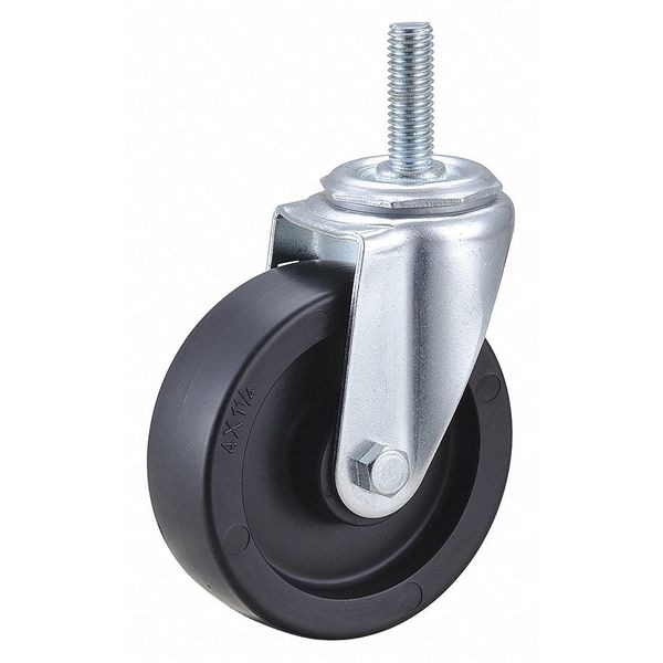 Stem Caster, Swivel Caster, 350 lb Load Rating, 300 to 999 lb, 4 in Wheel Dia., 1 1/4 in Wheel Width, Polyolefin Wheel/Tread Material, 4 13/16 in Mounting Height, Delrin, 1/2 In.-13 x 1-1/2 in Caster Stem Size, Threaded, Steel Caster Frame Material, Zinc Plated Frame Finish, Yes Non-Marking, 1 Number of Wheels