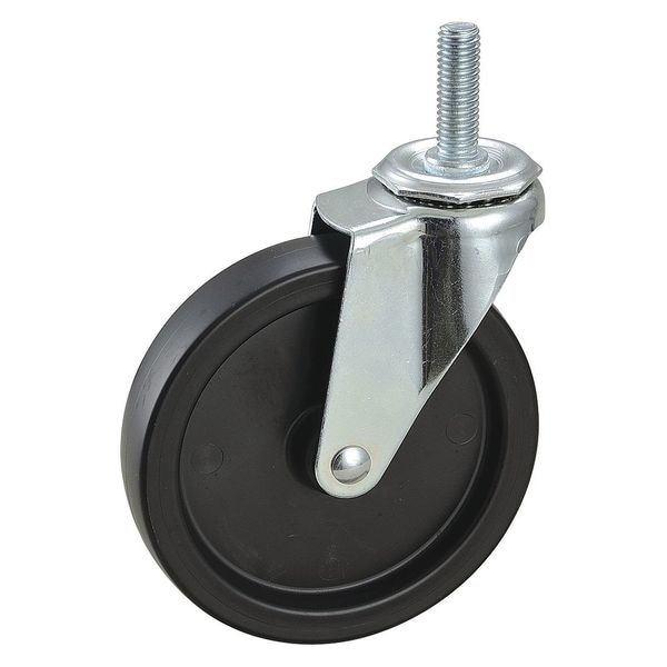 Stem Caster, Swivel Caster, 150 lb Load Rating, 0 to 299 lb, 5 in Wheel Dia., 1 in Wheel Width, Polyolefin Wheel/Tread Material, 5 13/16 in Mounting Height, Plain, 1/2 In.-13 x 1-1/2 in Caster Stem Size, Threaded, Steel Caster Frame Material, Zinc Plated Frame Finish, Yes Non-Marking, 1 Number of Wheels