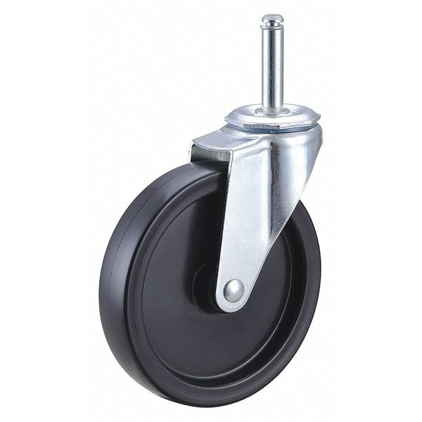 Stem Caster, Swivel Caster, 150 lb Load Rating, 0 to 299 lb, 5 in Wheel Dia., 1 in Wheel Width, Polyolefin Wheel/Tread Material, 5 13/16 in Mounting Height, Plain, 7/16 in x 1-29/32 in Caster Stem Size, Friction Ring, Steel Caster Frame Material, Zinc Plated Frame Finish, Yes Non-Marking, 1 Number of Wheels