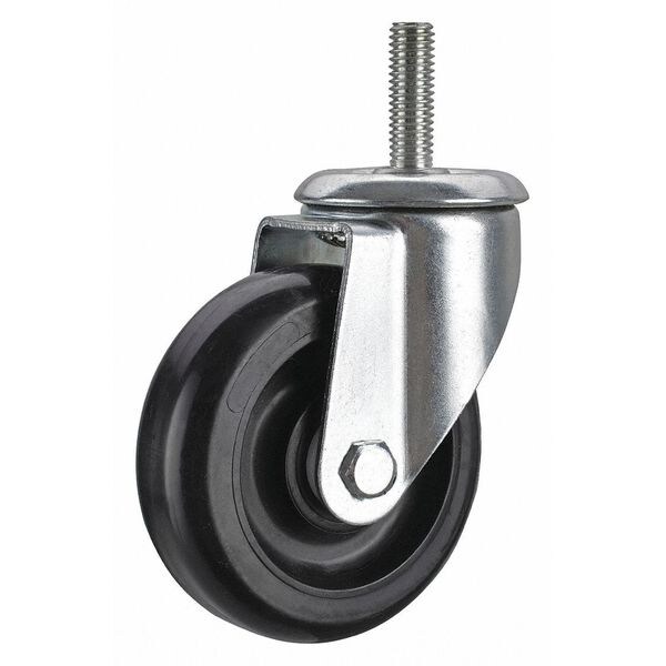 Stem Caster, Swivel Caster, 300 lb Load Rating, 300 to 999 lb, 5 in Wheel Dia., 1 1/4 in Wheel Width, Polyolefin Wheel/Tread Material, 6 3/16 in Mounting Height, Delrin, 1/2 In.-13 x 3/4 in Caster Stem Size, Threaded, Steel Caster Frame Material, Zinc Plated Frame Finish, Yes Non-Marking, 1 Number of Wheels