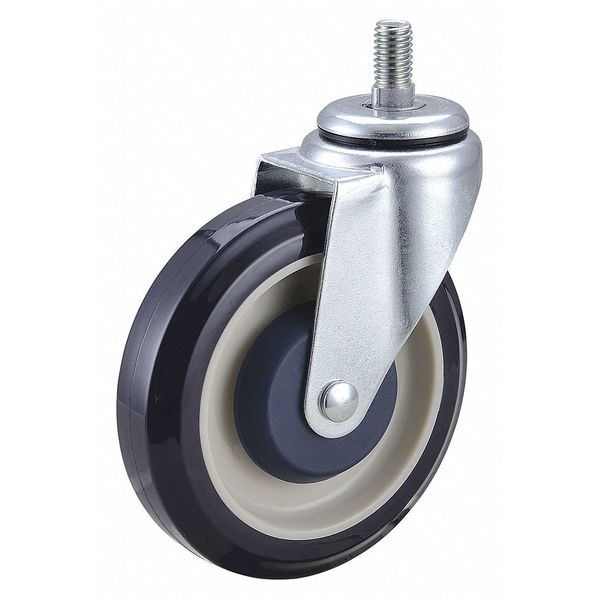 Stem Caster, Swivel Caster, 350 lb Load Rating, 300 to 999 lb, 5 in Wheel Dia., 1 1/4 in Wheel Width, Polyurethane Wheel/Tread Material, 5 7/8 in Mounting Height, Ball, 1/2 In.-13 x 1 in Caster Stem Size, Threaded, Steel Caster Frame Material, Zinc Plated Frame Finish, Yes Non-Marking, 1 Number of Wheels
