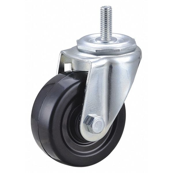 Stem Caster, Swivel Caster, 150 lb Load Rating, 0 to 299 lb, 3 in Wheel Dia., 1 1/4 in Wheel Width, Rubber Wheel/Tread Material, 3 13/16 in Mounting Height, Plain, 3/8 In.-16 x 1 in Caster Stem Size, Threaded, Steel Caster Frame Material, Zinc Plated Frame Finish, No Non-Marking, 1 Number of Wheels