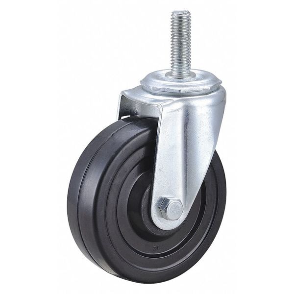 Stem Caster, Swivel Caster, 170 lb Load Rating, 0 to 299 lb, 4 in Wheel Dia., 1 1/4 in Wheel Width, Rubber Wheel/Tread Material, 4 13/16 in Mounting Height, Plain, 1/2 In.-13 x 1-1/2 in Caster Stem Size, Threaded, Steel Caster Frame Material, Zinc Plated Frame Finish, No Non-Marking, 1 Number of Wheels