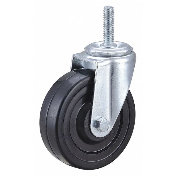 Stem Caster, Swivel Caster, 170 lb Load Rating, 0 to 299 lb, 4 in Wheel Dia., 1 1/4 in Wheel Width, Rubber Wheel/Tread Material, 4 13/16 in Mounting Height, Plain, 7/16 In.-14 x 1-1/2 in Caster Stem Size, Threaded, Steel Caster Frame Material, Zinc Plated Frame Finish, No Non-Marking, 1 Number of Wheels