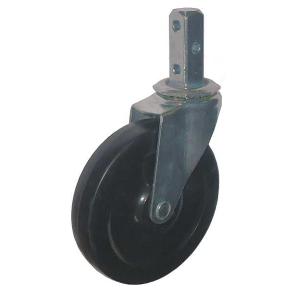 Stem Caster, Swivel Caster, 125 lb Load Rating, 0 to 299 lb, 5 in Wheel Dia., 1 in Wheel Width, Rubber Wheel/Tread Material, 5 27/32 in Mounting Height, Plain, 3/4 in x 2-1/16 in Caster Stem Size, Square, Steel Caster Frame Material, Zinc Plated Frame Finish, No Non-Marking, 1 Number of Wheels