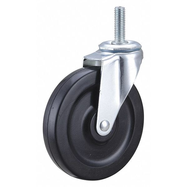 Stem Caster, Swivel Caster, 125 lb Load Rating, 0 to 299 lb, 5 in Wheel Dia., 1 in Wheel Width, Rubber Wheel/Tread Material, 5 13/16 in Mounting Height, Plain, 1/2 In.-13 x 1-1/2 in Caster Stem Size, Threaded, Steel Caster Frame Material, Zinc Plated Frame Finish, No Non-Marking, 1 Number of Wheels