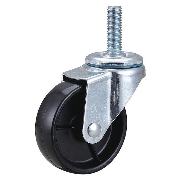 Stem Caster, Swivel Caster, 125 lb Load Rating, 0 to 299 lb, 3 in Wheel Dia., 1 in Wheel Width, Polyolefin Wheel/Tread Material, 3 5/8 in Mounting Height, Plain, 1/2 In.-13 x 1-1/2 in Caster Stem Size, Threaded, Steel Caster Frame Material, Zinc Plated Frame Finish, Yes Non-Marking, 1 Number of Wheels