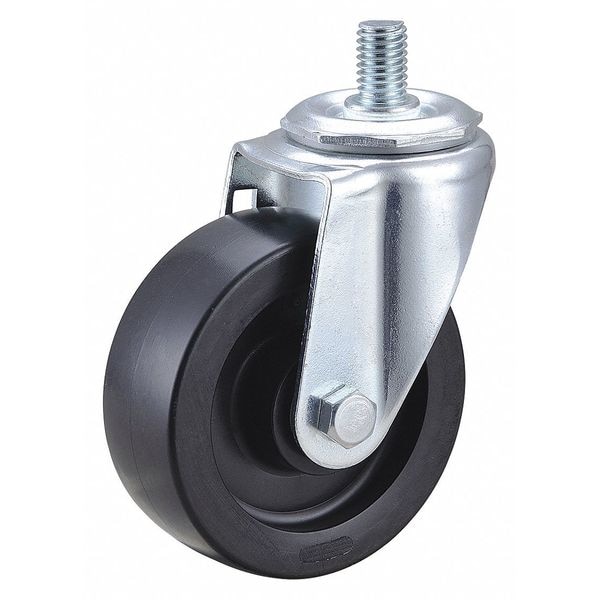 Stem Caster, Swivel Caster, 250 lb Load Rating, 0 to 299 lb, 3 1/2 in Wheel Dia., 1 1/4 in Wheel Width, Polyolefin Wheel/Tread Material, 4 3/8 in Mounting Height, Delrin, 1/2 In.-13 x 3/4 in Caster Stem Size, Threaded, Steel Caster Frame Material, Zinc Plated Frame Finish, Yes Non-Marking, 1 Number of Wheels