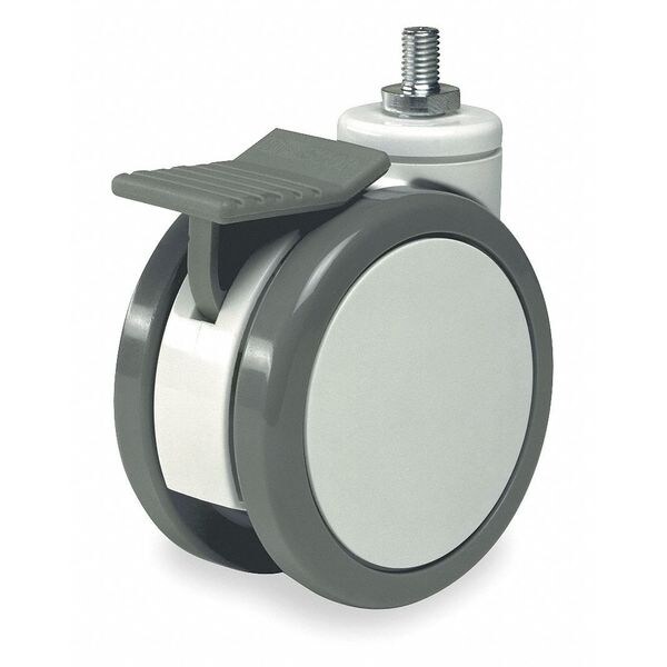 Stem Caster, Swivel Caster with Total Lock, 220 lb Load Rating, 0 to 299 lb, 5 in Wheel Dia., 3/4 in Wheel Width, Polyurethane Wheel/Tread Material, Threaded, Yes Non-Marking, 1 Number of Wheels