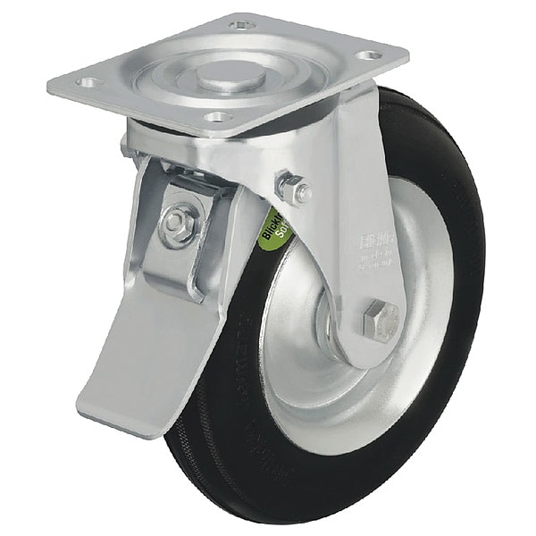 Swivel, Plate Caster, Load Rating 440 lb, Wheel Dia. 10 1/4 in, Wheel Width 3 3/8 in, Wheel/Tread Material Rubber, Non-Marking No, Number of Wheels 1, Caster Brake Type Total Lock, Tread Shape Standard