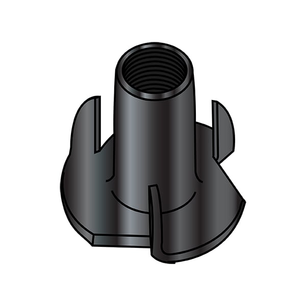 T-Nut, 3 Prongs, #8-32, Steel, Black Zinc, 2000 PK