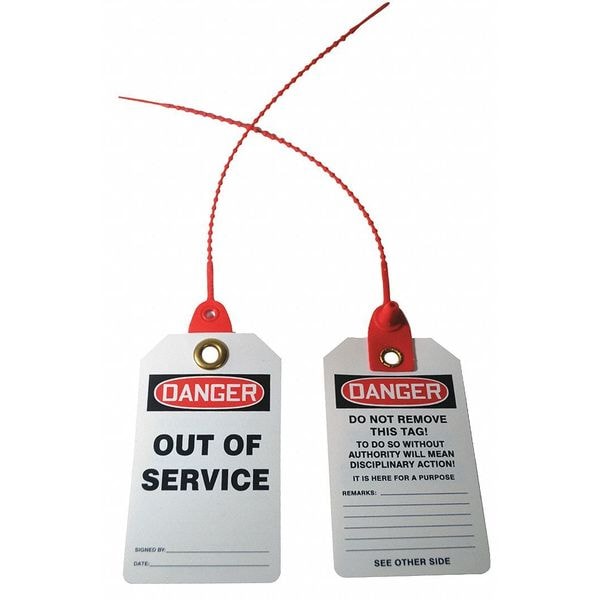 Tag, Compatible Tag Holder Mfr Part Number Not Applicable, Compatible Tag Insert Mfr Part Number Not Applicable, Fastener Attachment Length 10 in, Fastener Type Beaded Tie, Header Wording (Reverse Side) Danger, Header Wording Danger, Height 5 3/4 in, Indoor/Outdoor Usage Indoor/Outdoor, Lamination Type Not Laminated, Language English, Mounting Hole Reinforcement Type Metal, Mounting Hole Size 5/16 in, Number of Tags 10, Preprinted Images (Reverse Side) Not Applicable