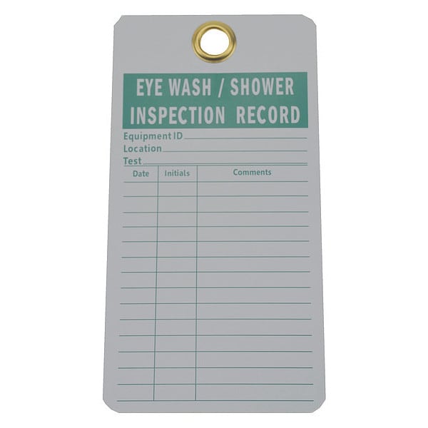Tag. Emergency Eyewash & Shower Inspection Record, Cardstock, 5 x 3, White Tag/Green Legend, PK25