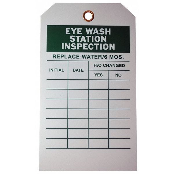 Tag, Eyewash, Polyester, 7 in H x 4 in W, White, Rectangle, 10 PK